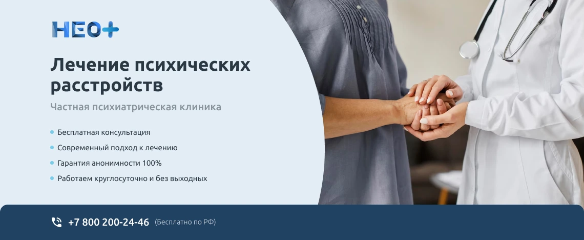 Записаться на прием к врачу-психиатру можно на официальном сайте клиники «НеоПлюс» в Палласовке или по телефону ☎️ +7 (800) 200-24-46. Звоните нам, не запускайте проблему. Мы знаем, как вернуть здоровье и покой в Вашу семью!